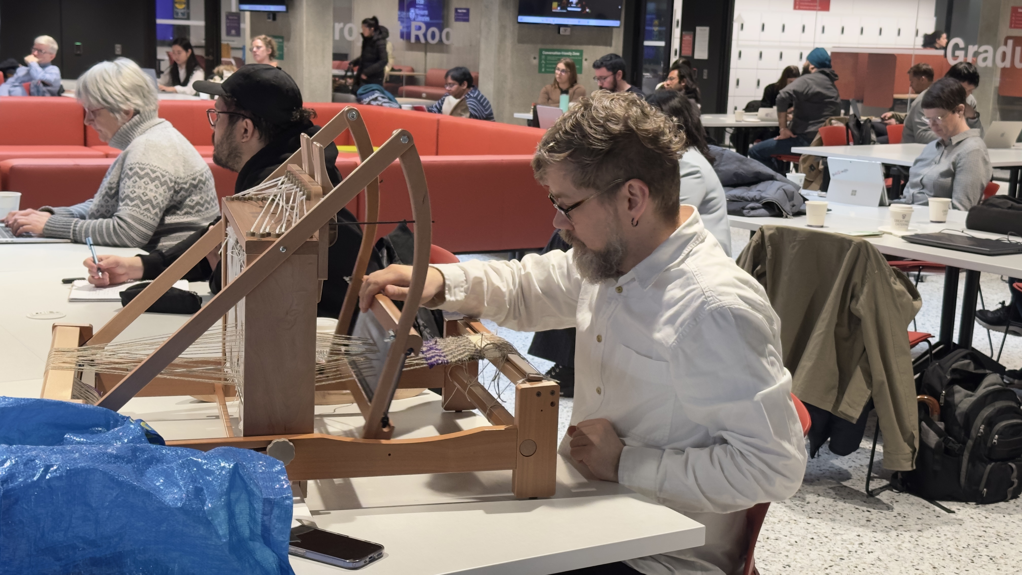 Participants got hands-on with everything from loom weaving and e-textiles to building AI agents, network visualization, and DIY zine publishing. Two sessions of lightning talks showcased the breadth of DH work happening at Western and beyond, spanning GIS mapping, medieval manuscripts, feminist social media analysis, investigative journalism, video game studies, and more. A midday panel — What is DH? — brought together faculty and librarians to explore how digital methods and tools are transforming the ways we research, interpret, and share knowledge.